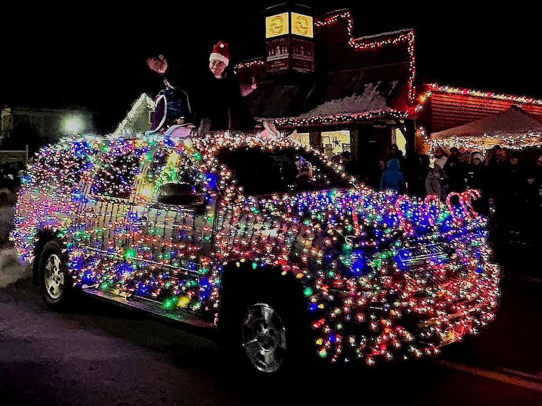Taylors Falls Mayor Brandon Weiberg easily stood out on his “float’ in the Lighting Festival Parade last weekend.