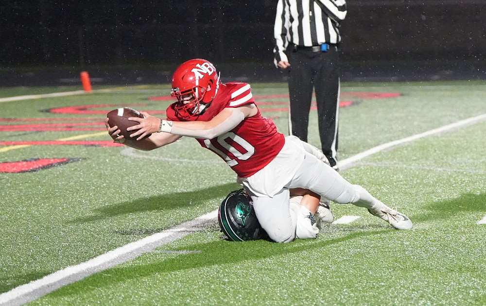 On the next play, Emerson ran an option play to the left and pitched it out to running back Dane Ahrens, who scored from nine yards out. The Greyhounds went for a two point conversion, but Emerson’s pass was batted down by Jacob Knoespel, leaving NB down just 6-0.