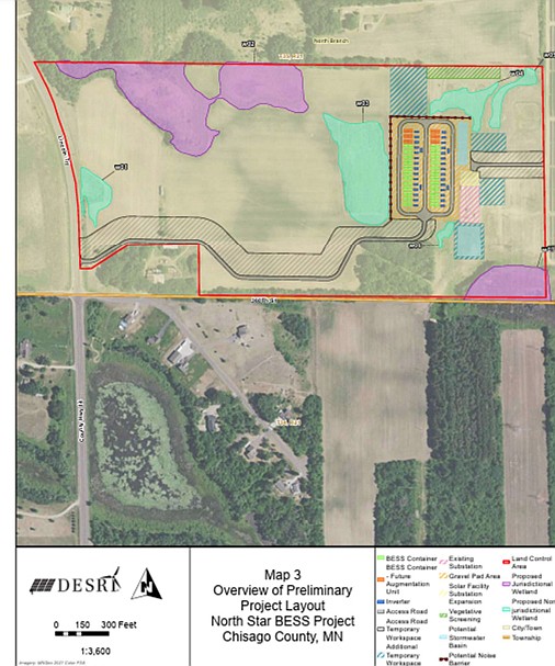 The proposed battery storage facility associated with the North Star solar array, in the south end of North Branch, is inching along and is at the early stages of permit review. There will be a public meeting in person and an on-line meeting later this month.