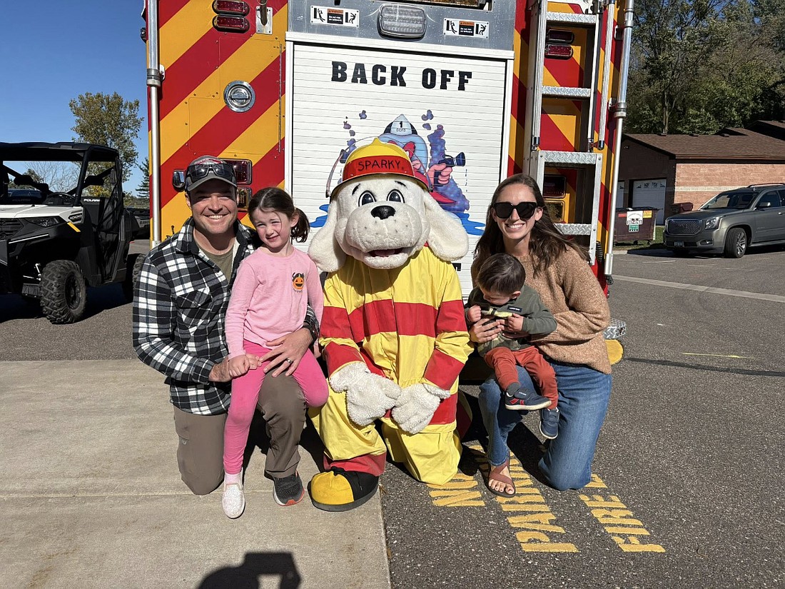 Lindstrom Fire Department hosted the public last weekend for fire prevention week, with partners from the Minnesota Department of Natural Resources firefighting division. Center City is also pictured with visitors to its fire hall open house. Below right: Taylors Falls Fire Department visited Taylors Falls Elementary during Fire Prevention Week.