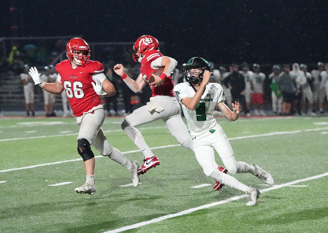Quarterback Ethan Thorsen has had moments of great play in the first three games of the year, but the contest against the Wolverines was his true breakout game. The senior went a perfect seven-of-seven through the air for 104 yards and a touchdown, and ran for 201 yards and two touchdowns on just seven carries, propelling NB to an easy win.