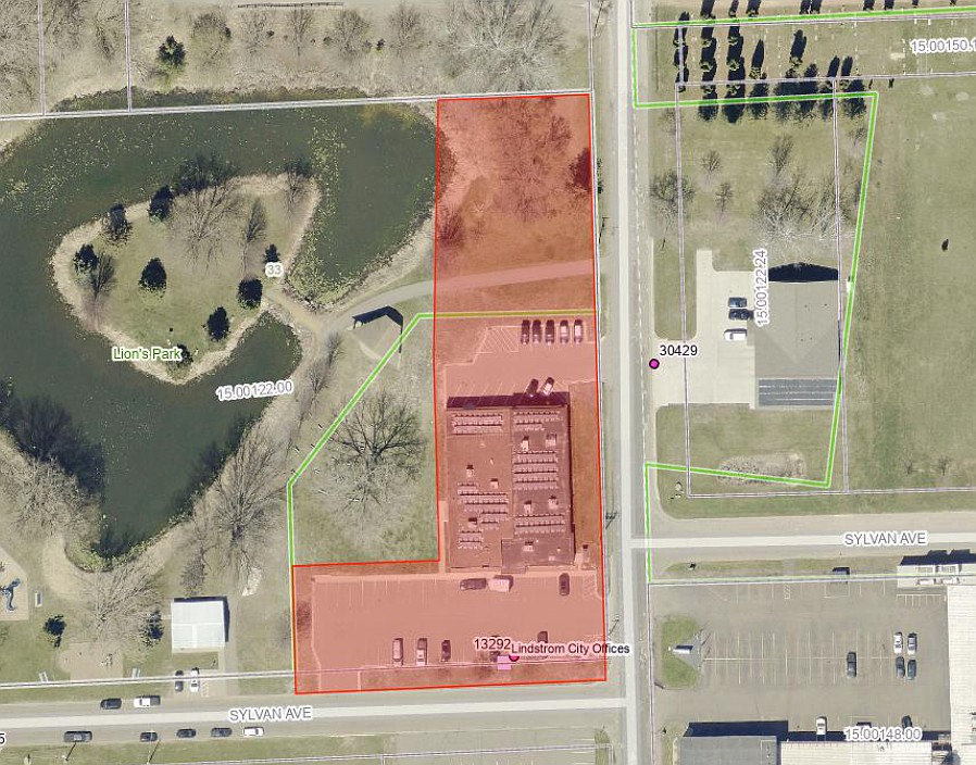 Some unknowns that the project still faces include what the commission is able to pay to acquire Lindstrom City Hall. The price is unresolved right now. (See graphic above for purchase area proposed.)