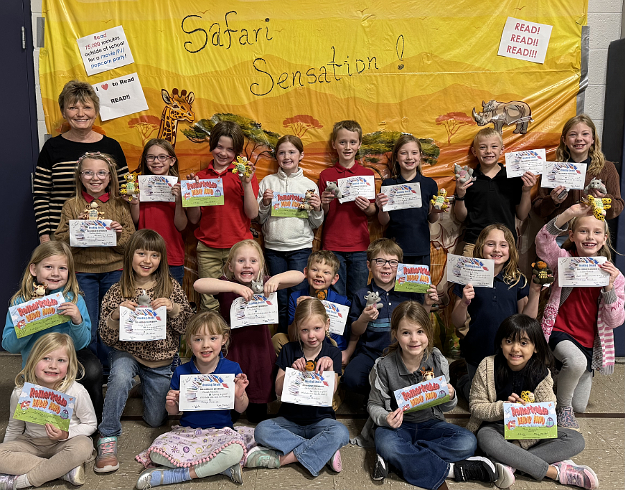 Top readers at Chisago Christian School celebrate “I Love to Read” month.